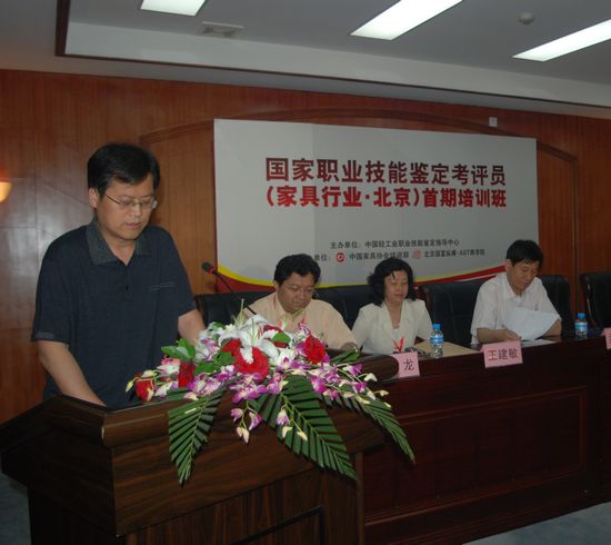 在開班典禮上,中國國家人力資源和社會保障部劉新昌處長針對中國國家職業技能鑒定工作未來的趨勢和發展方向做了精彩的報告,輕工業聯合會孟琪主任針對如何開展家具行業技能鑒定工作做了實際意義的報告,兩位領導的精彩報告博得了在場所有學員的熱烈掌聲。中國家具協會劉金良副理事長針對此次培訓班做了簡短而精煉的發言,代表中國家具協會表示有信心把家具行業的職業資格認證教育發展的越來越好。北京國富縱橫管理咨詢有限公司國際•AST商學院作為中國家具協會的培訓部,中國家具行業職業資格認證教育執行機構為此次培訓班提供精良的會務保障,總裁趙龍博士在開班典禮上風趣幽默的發言,表示北京國富縱橫管理咨詢有限公司一定會把家具行業的職業資格認證教育推向高潮,有信心出色地完成中國家具協會交給北京國富縱橫的任務。